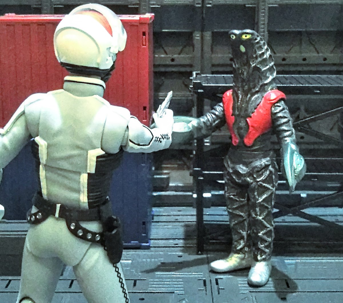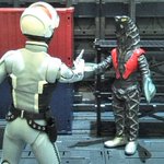 【#ウルトラ警備隊 #オモ写】#ウルトラセブン48/49話 #史上最大の侵略(前/後編)の対決に割って入った #山田浅ェ門 安弩。 『#パンドン の頸、頂戴致しました~♪』 「ええ~、アタクシがするやつなんですけど、それ」