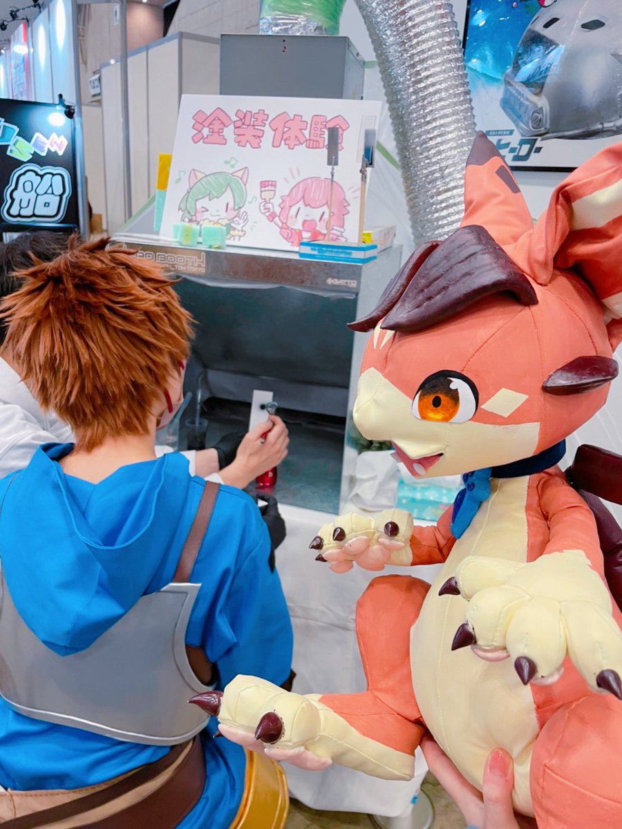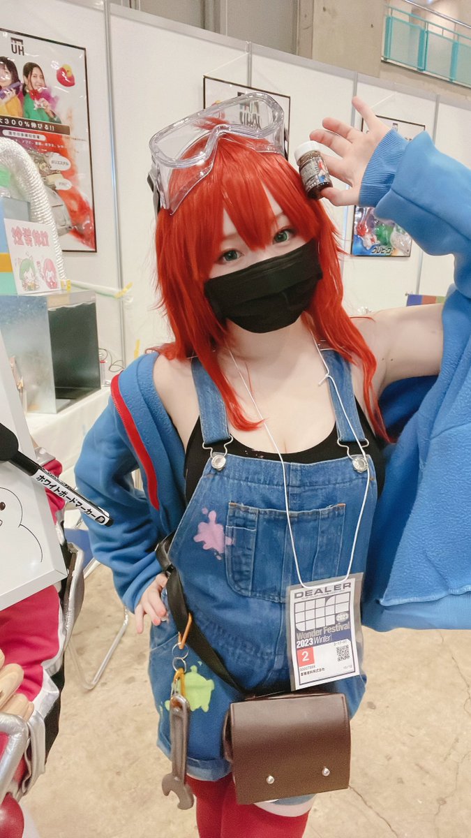 好きな物を詰め込んだ創作キャラ🦈 スイファクちゃん🔨のコスプレをしました( >ω∂ )☆どうでっすかっ コラボ塗料を使った作例を早速用意しました!造形物に深みが出てかっこよくなる最高のカラーになりました✨何卒! #WF2023冬 #ウレヒーロー #スイスイシャドウブラック twitter.com/i/web/status/1…