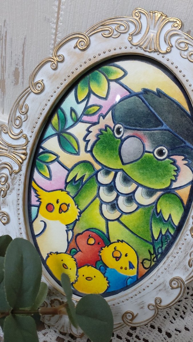ウロコインコ🐦 ウロコというより松ぼっくり柄に見えてしまう😂 ほんわか仕上げ目指して久々、油絵で着色🤗✨ #ウロコインコ #Pyrrhuramolinae #Greencheekedparakeet #bird #illustration #お絵描き #イラスト #お絵描き練習 #毎日お絵描き #CLIPSTUDIO