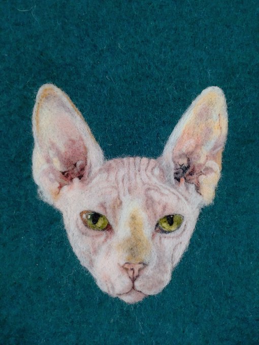 ウールペインティング自由課題 我が家のベリーが完成しました👏 頑張り過ぎて、触り過ぎましたが😅 納得いく作品が出来ました(=^ェ^=) #ウールペインティング #ウールペインティング認定講座 #ねこ #羊毛 #羊毛フェルト
