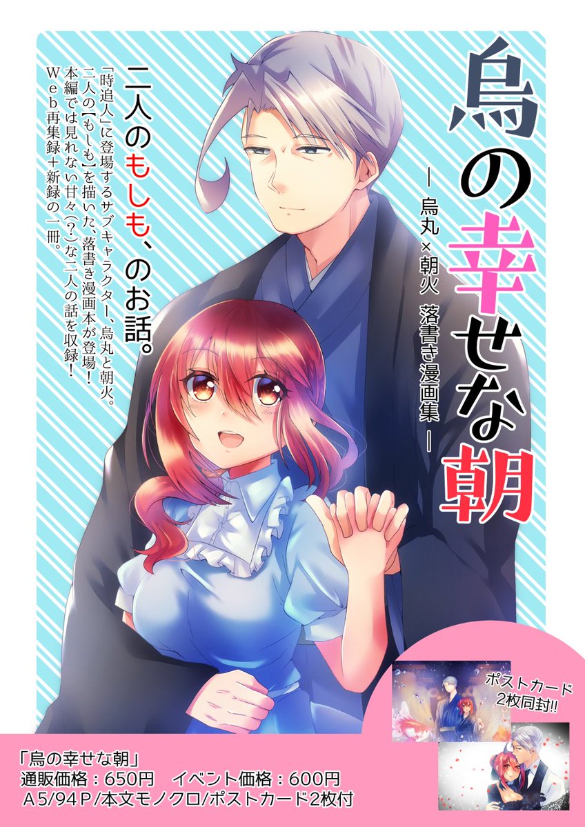 「時追人」のサブキャラである烏丸と朝火の落書き漫画本集。本編では決して描かれることのなかった落書き漫画を96Pたっぷり収録!おじさん×少女がお好きな方にぜひ… 烏の幸せな朝 blueskygarden.booth.pm/items/3193228 #エアコミティア138 #エアコミティア #エアコミティア_少女 #エアコミティア_通販