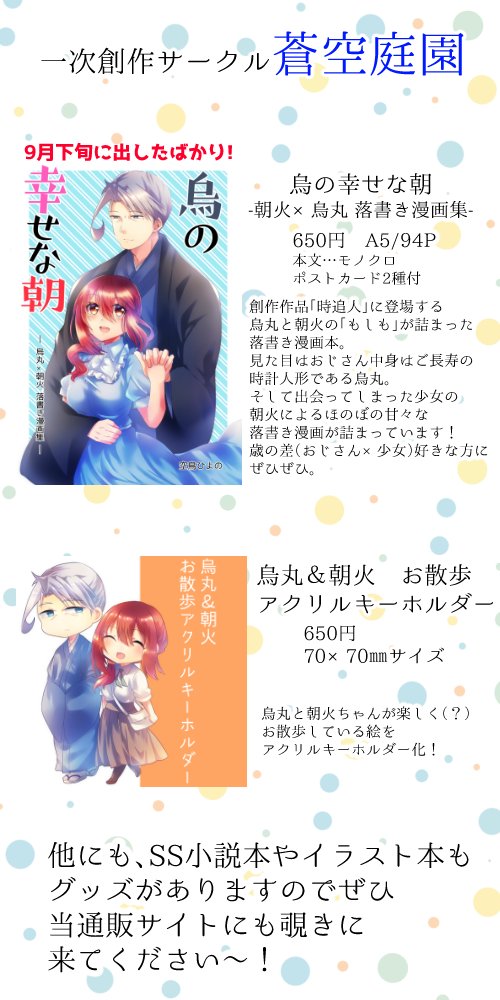 烏があいする朝 blueskygarden.booth.pm/items/2783163 烏丸と朝火ちゃんの日常を描いたSS小説本。おじさんと少女ものです! 初版はこの1冊のみとなり、セールを実施中ですのでぜひ!この1冊でも読めると思います~ #エアコミティア138 #エアコミティア_文芸 #エアコミティア_通販