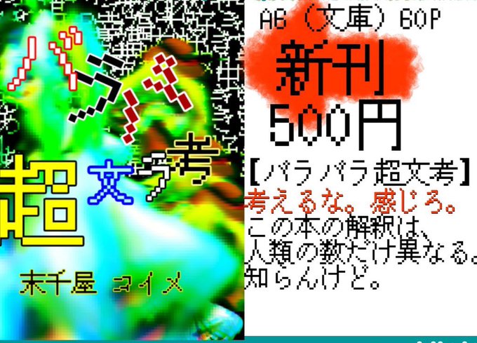 #エアコミティア138 #エアコミティア_文芸 #エアコミティア_通販 意味がわからないことを愉しむの。 意味がわからないから、たのしいの。 バラバラ超文考 | 夕焼けの里観光協会 yuyakenosato.booth.pm/items/3279222 #booth_pm