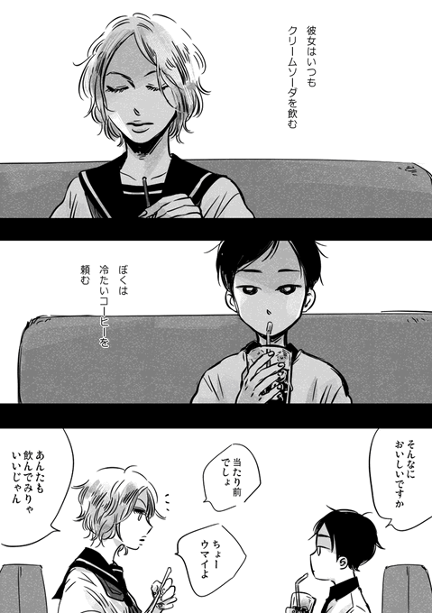 #エアコミティア140 #エアコミティア_青年 #漫画が読めるハッシュタグ 「クリームソーダ飲みたい。」(2015年制作) きっと手が届かない少女を夢見る少年 古いものですが好きなままの漫画🥤🫗