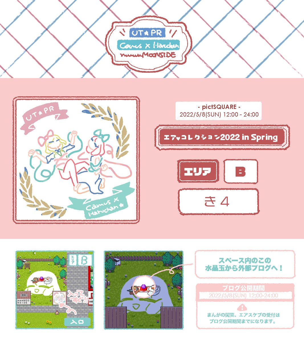 5月8日エア♡コレクション2022 in spring 【D-え6】合同サークル「同窓会」で参加します。 🌸 GS4の合同誌告知 🌸 イラスト展示 🌸 ネットプリント を予定しています。よろしくお願い します🙇 #エアコレ2022春 #エアコレ2022春お品書き
