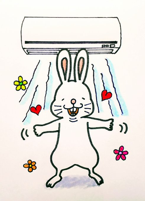 おはようございます🌞 金曜日✨👀 今日も熱中症に気をつけて、無理せず良い1日にしましょう😊🍀🍉 【背中にエアコンの風 ~解き放て~】 ※再掲です。 #イラスト #前歯うさぎ #絵柄が好みっていう人にフォローされたい #illustration #rabbit #エアコン #クーラー #体温調節