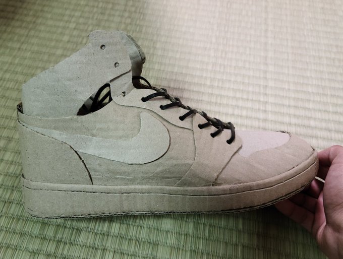 左右のロゴが完成しました。 もうキツいから、しばらく靴は作らないだろうなと感じております。 動画でツイートしてみようかな。 #段ボールアート #ダンボール工作 #Cardboardart #Cardboard #Nike #NIKE #エアジョーダン #airjordan #靴 #shoes