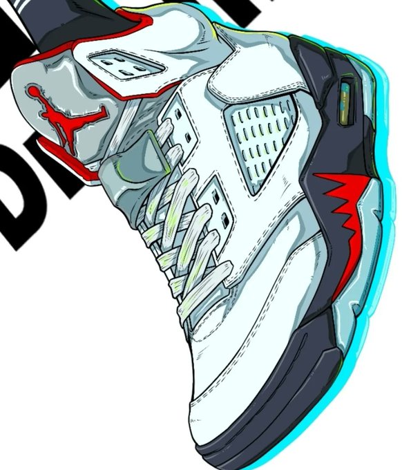 久々に描くAJ5、 くるぶし回りの履き心地めっちゃ良いところの形が上手く描けて満足🎵 #エアジョーダン #エアジョーダン5 #airjordan5 #スニーカー #スニーカーイラスト #ファイアレッド