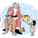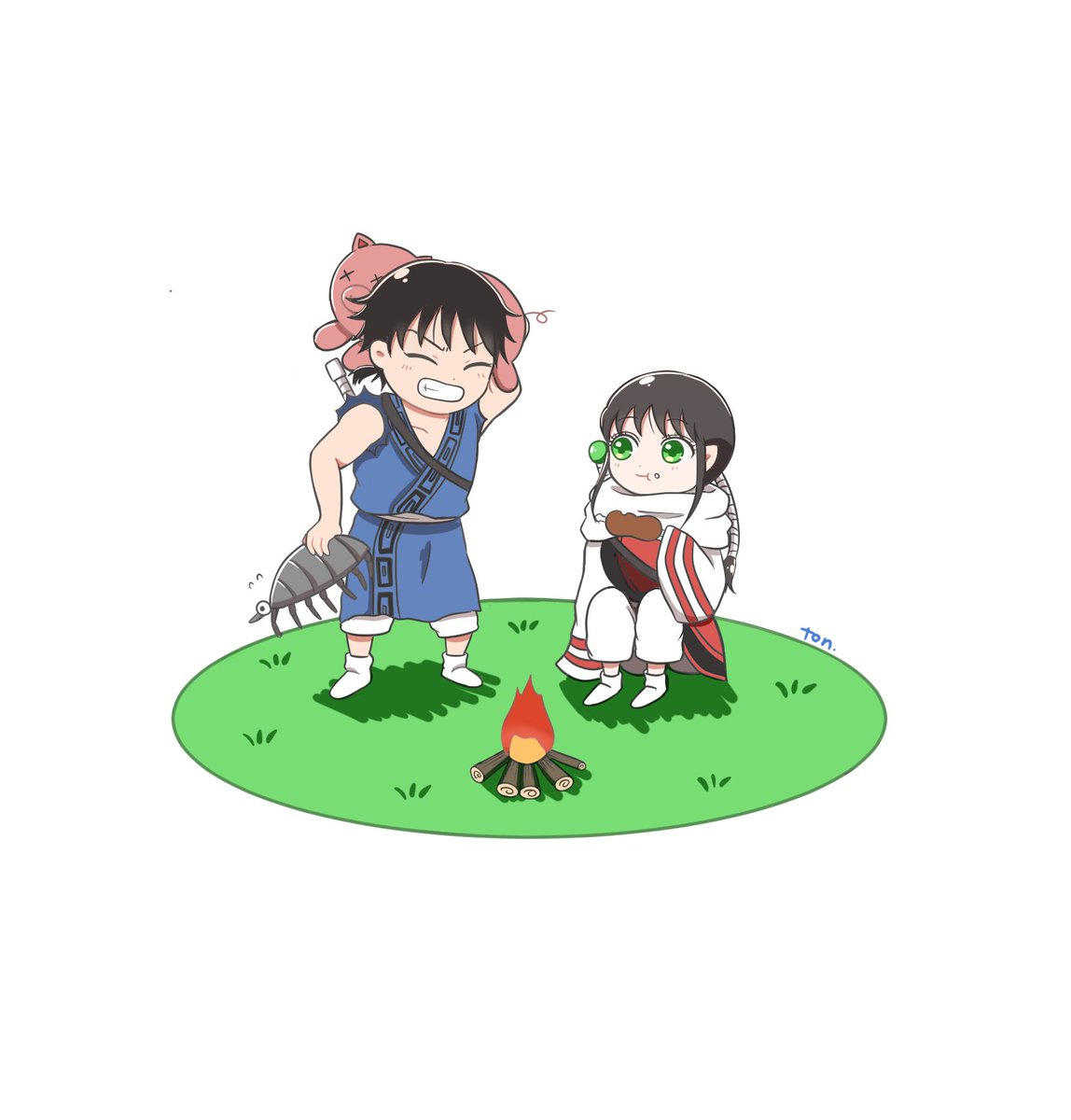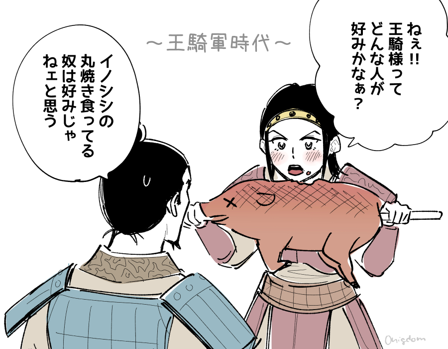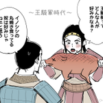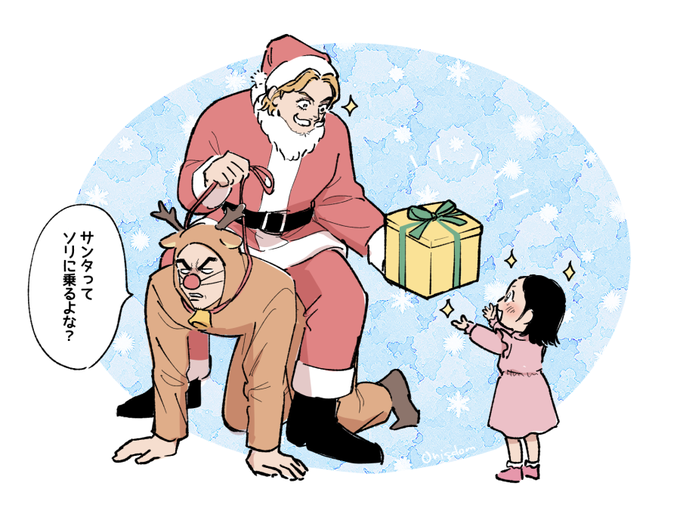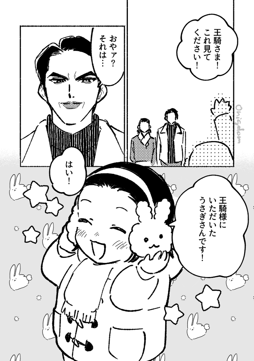 #群雄創記_1225 #エアスケブ リクエスト「うさぎのイヤーマフ付けた着物のチビッ子摎姫の愛らしさに、ついついお年玉を弾む殿」 着物じゃなくなりました!いつも幼摎でも普段の殿を描きがちなので今回若い殿を意識して描きましたがやっぱりお父さんっぽくなりました!