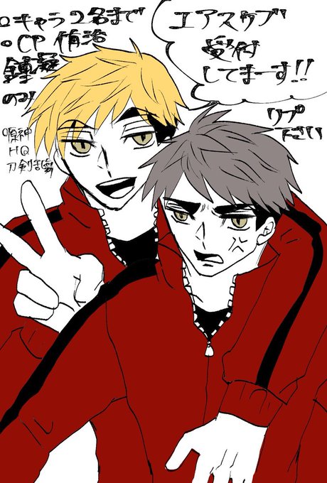 【エアスケブ受付中】 本日17時まで ジャンル→HQ、原神、刀剣乱舞 CP→あつおさ、鍾凝 描く人数→2名まで 取り扱いCP以外はコンビ解釈で描きますので、ご了承ください #エアブー #エアブー230212 #エアスケブ