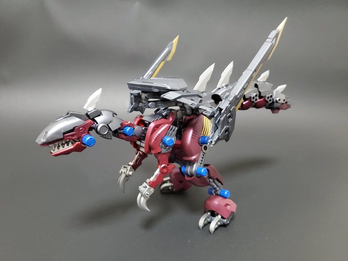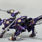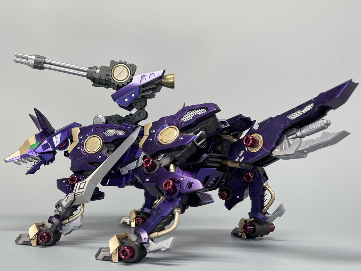 エアスタンドリバー用のディープシャドーフォックス完成しました! 出力品のブレードを装備させた以外はほぼノーマル 全身メタリックってのを一度やってみたかったので実験体になってもらいました #HMMゾイド #コトブキヤ #エアスタンド・リバー会戦