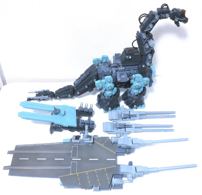 時間的に新製品情報で埋もれてそうですが、会場ではレギュレーションの都合で展示できない(多分)のでこちらで。 ひっそり作ってたウルトラザウルス空母型です。 基本的にレドラーのパッケージ絵準拠ですが、細かい部分はバトスト作例を参考にアレンジしてます。 #エアスタンド・リバー会戦