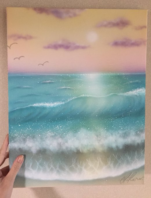東洋の真珠と称される与論島の海をモチーフにした作品🌊 波打ち際に打ち寄せる真珠が散らばるようなイメージで描きました👩🎨🎨 thisisgallery.com/product/503282 #thisisgallery #海の絵 #絵 #エアブラシアート #真珠 #絵描きさんと繋がりたい #artilljp #美術ネットワーク #artilljp #現代作家の環 #芸術の輪