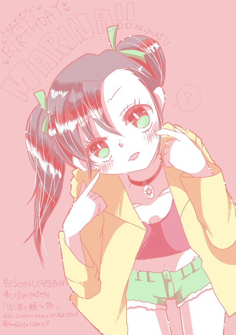#大神マリナ生誕祭2022 #エアレツゴ万博2022 #カラーパレットからリクエストされた番号のカラーを使って描く マリナちゃんおめでとう〜! 一緒にお祝いさせてください! 7枚目はこころさん(@shockcocoro )の15番「君の頬に恋」 かわいいポーズにしてみました〜!改めておめでとう〜!