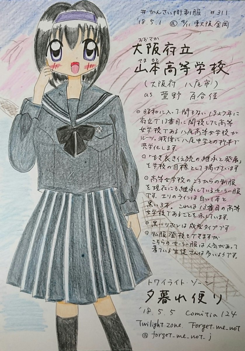 (92,053)#エア恋パレ #エア恋パレイラストコンテスト トワイライト・ゾーンの忘れな草です。毎度お世話になります。 過去絵でスミマセン。アリオ八尾で展示会してたら、ここを描き下ろしてただろうなというところの、かんさい街制服から。 河内山本駅の玉串川の桜並木と4本線のセーラー服。