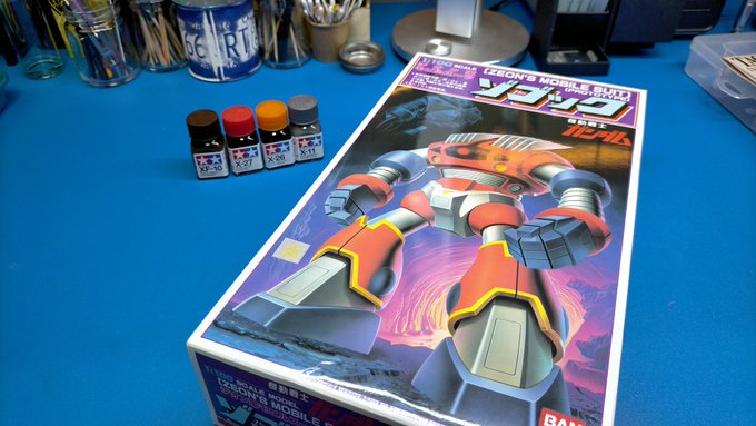 昨日は予定通り旧キット ジュアッグ サフまで行けたので今日は色決めしながら マスキング地獄に進みます #ガンプラ #ガンプラの画像貼るとRTされると聞いて #ガンプラ好きと繋がりたい #旧キット #エイトフォールド