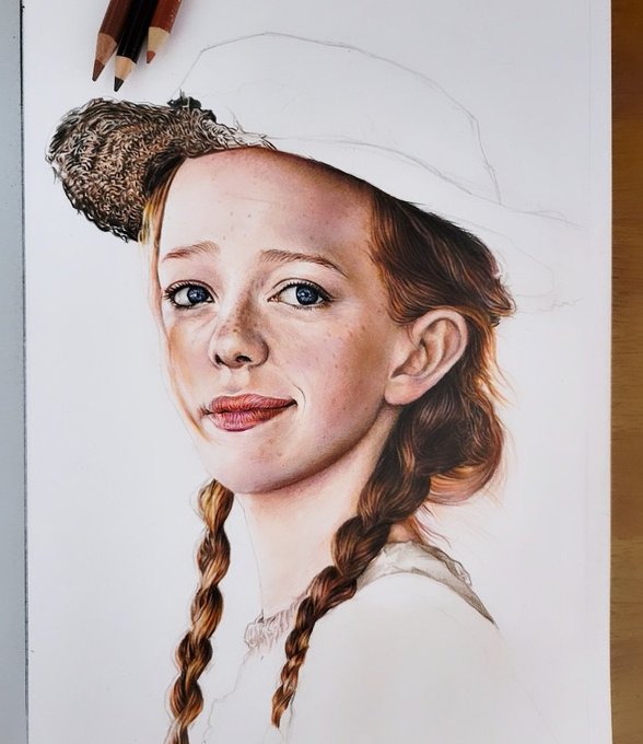 赤毛のアンの似顔絵が完成いたしました🙏 持ち前の明るさと豊かな想像力を武器に、失敗を重ねながらも困難に立ち向かうアンの姿に心打たれました😄 無事に描ききることができて良かったです😆 #似顔絵 #色鉛筆画 #赤毛のアン #エイミーベスマクナルティ #絵描きさんとつながりたい