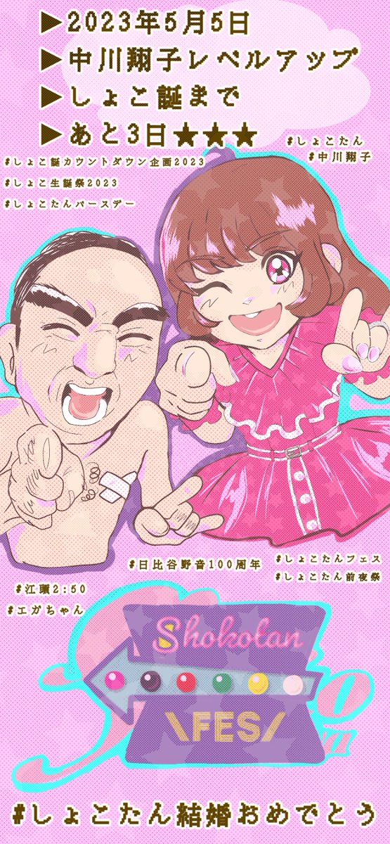 しょこ誕イラスト企画で描いたよ🎨✨ しょこたんレベルアップ& しょこたんフェスまであと3日! 前夜祭まであと2日!! そしてご結婚おめでとう❣️ ずっと大好き! #しょこ誕カウントダウン企画2023 #しょこ生誕祭2023 #しょこたんバースデー #しょこたんフェス #しょこたん #中川翔子 #エガちゃん
