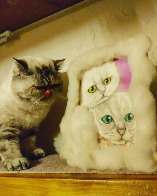 ぺろっと新作紹介(๑´艸`) つかまり立ちができるようになった赤ちゃんに 怖がりの猫ちゃん₍̫̫˲᭯ΦܫΦ˱᭯₎ ̫🐾 が勇気をふり絞って先導… できるかな? #羊毛フェルト #エキゾチックショートヘア #男の子ベビー
