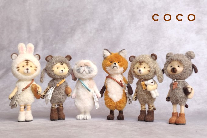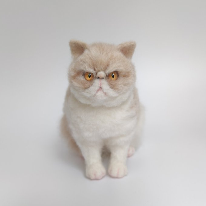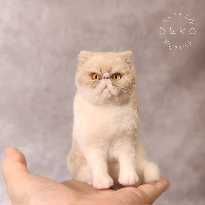 こちらのエキゾチックさんは2足で立っているのでcocoっぽい作品になっていますが、ひげがあったりとか、足の裏の磁石が無かったりとか、勝手な理由を付けて『つんつん工房DEKO』の作品としてご紹介しております。(✿^‿^) #羊毛フェルト #エキゾチックショートヘア