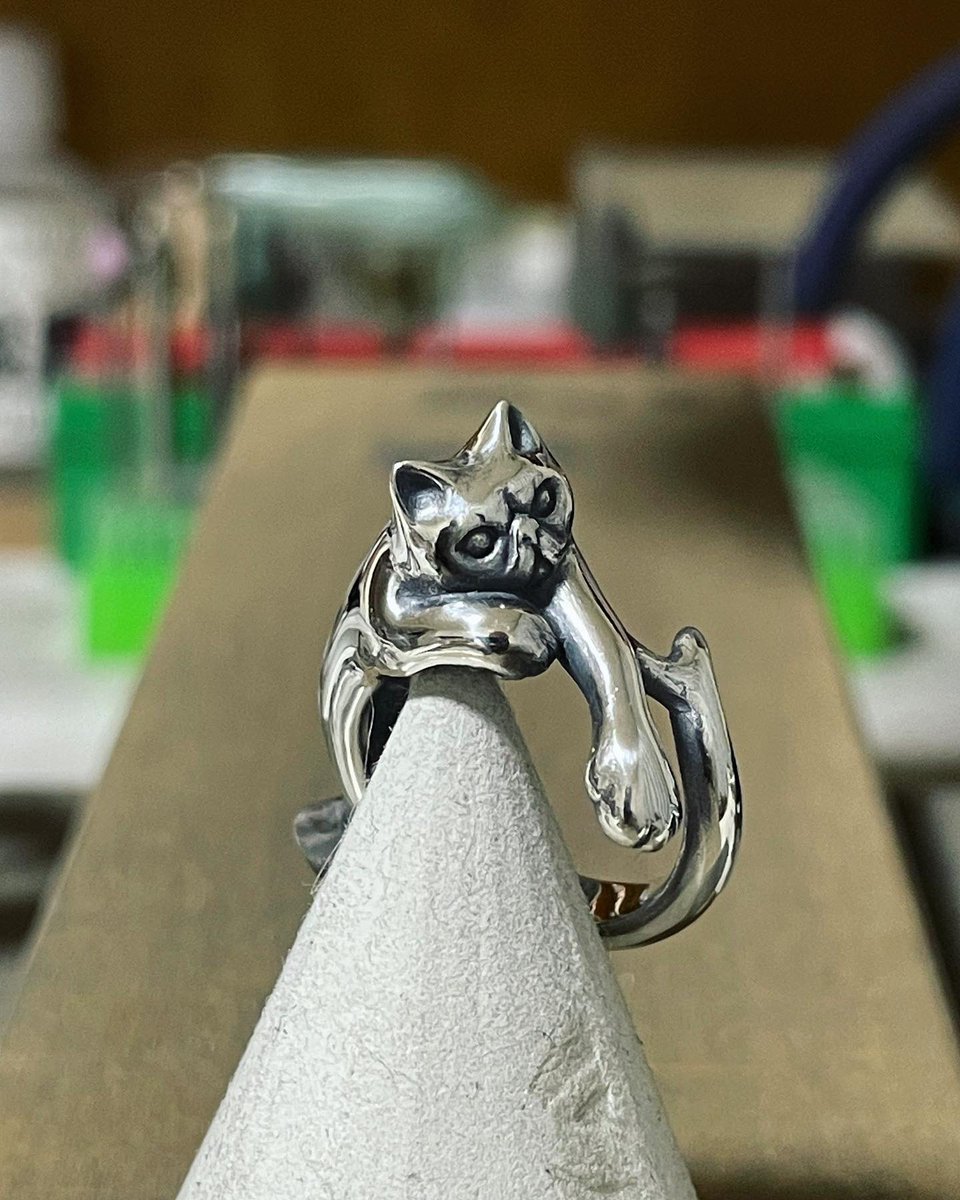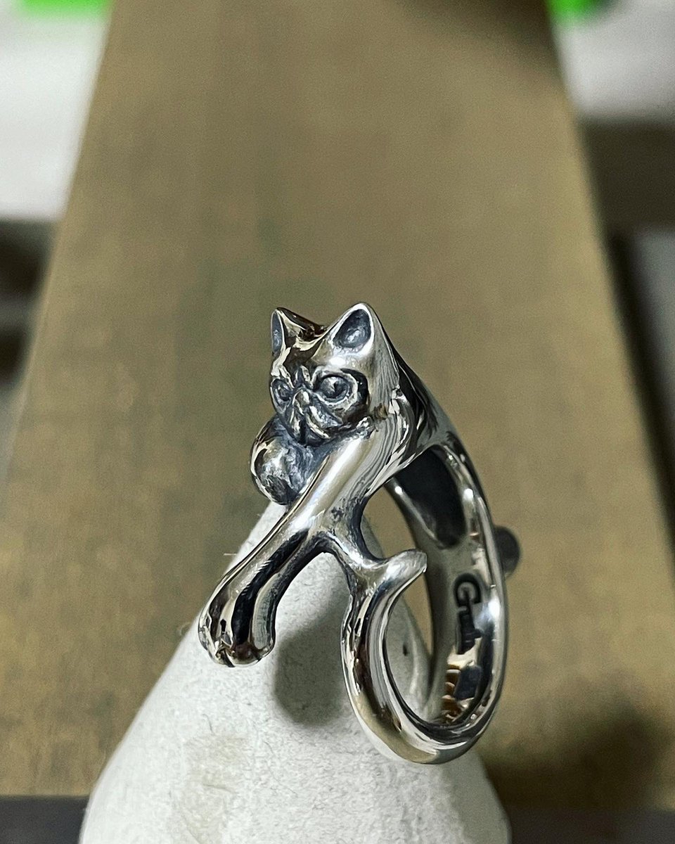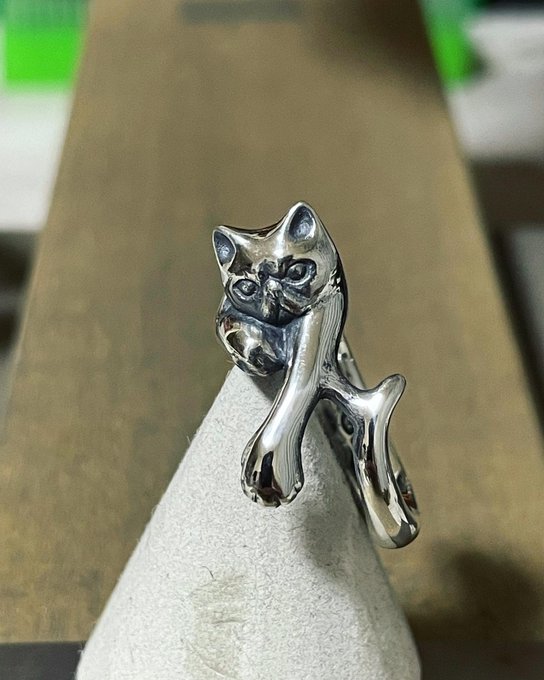 #エキゾチックショートヘアー のリング原型 フリーサイズ仕様なので 指のむくみにも負けません 笑 minne:minne.com/@gush2017 instagram:instagram.com/gush_accessori… YouTube『猫下僕兼彫金師』:youtube.com/channel/UCXKZl… #猫 #猫アクセサリー #猫リング #猫アート #シルバーアクセサリー