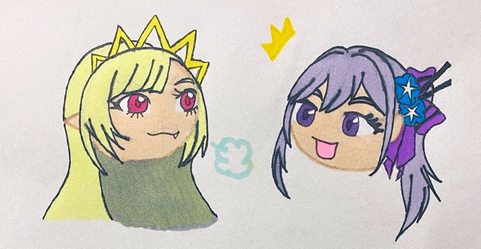 描いたよォ! ホントに絵が下手で申し訳ない😢 あと、最初は瑠璃姉がピースしてるようにしたかったから、失敗の跡も…(綺麗に出来てたから没にしたくなくて…) この思い届け!!! ホントにおめでとうございます!!!! #朝ノ瑠璃 #あさの絵巻 #邪神ちゃんドロップキックX #エキュートオーディション