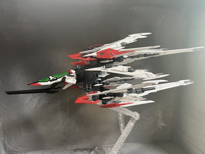 今回もガンダムマーカーで部分塗装して、プレミアムトップコートを噴いただけです。 デカールは付属品だけでは物足りないので、市販のものを加えました。 飛行形態へ変形可能ですが、手付かずです。 #エクリプスガンダム #ガンプラの画像を貼るとRTされると聞いて #ガンプラ初心者