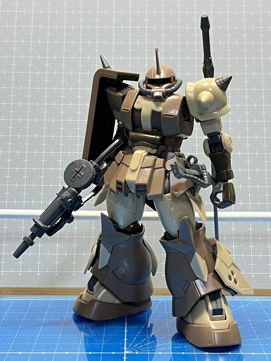 高機動型ザク地上用(エグバ機) 迷彩塗装にて完成しました😄 水転写デカールの難易度が高そうだったのではじめて迷彩塗装に挑戦。 正解かどうかわからないけど迷彩塗装 も良いですね! #ククルス・ドアンの島 #エグバ機 #ガンプラ #アワハイムエレクトロニクス