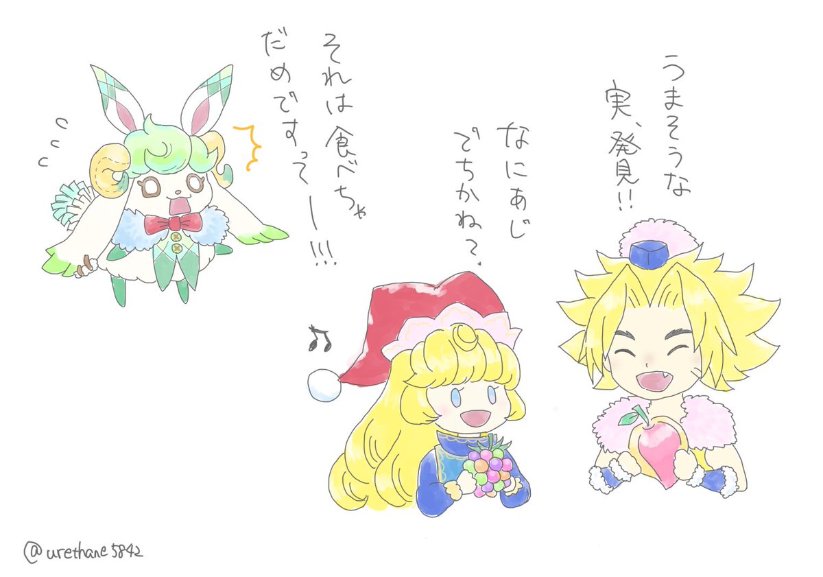#エコマナFA #エコマナファンアート ホークアイくんとパール様のピックアップ回したら何故か毎回リース様がてんこもり出てきた時のやつ クラス2初実装が嬉しかった時の描いたらまじで出たやつ 運を上げてかぼちゃで殴るハロウィンのかぼちゃのやつ