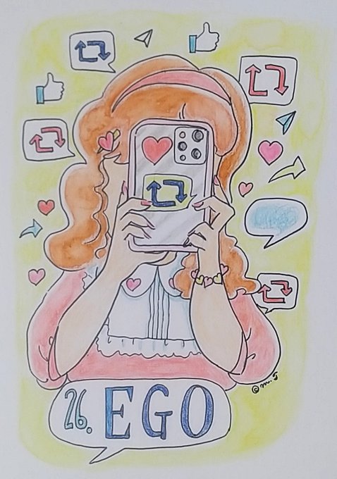 26. エゴ うぬぼれ EGO 推し活や自撮りもそうなのだけれど 私の場合はちょっと苦手… #inktober2022 #inktober #Inktober_PerfectChallenge #KuretakeInktober2022_giveaway #エゴイスト #イラスト