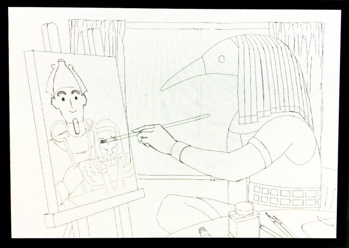 イシス、アヌビス、トト、オシリス 塗り進めています🌼 #イラスト #制作工程 #油絵 #創作クラスタフォロー祭り #夏の創作クラスタフォロー祭り #エジプト神話 #エジプト #making #oilpainting #Egypt #Egyptian #mythology #artwork