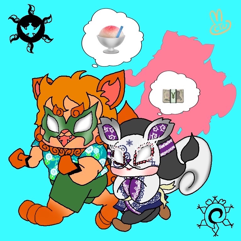 おはようございます🦊🍧 🟠シーサーオレンジ&🟣エゾリスパープル(トゥスニンケ) 沖縄・北海道コンビ 🦁🗯おめぇさんの氷でかき氷作って売ろうぜ!! 🐿💭売上金 私とアナタ8:2なら良いですわよ♪ #イラスト #シーサー #エゾリス #トゥスニンケ #みんなで楽しむTwitter展覧会 #夏色カラフル芸術祭2022