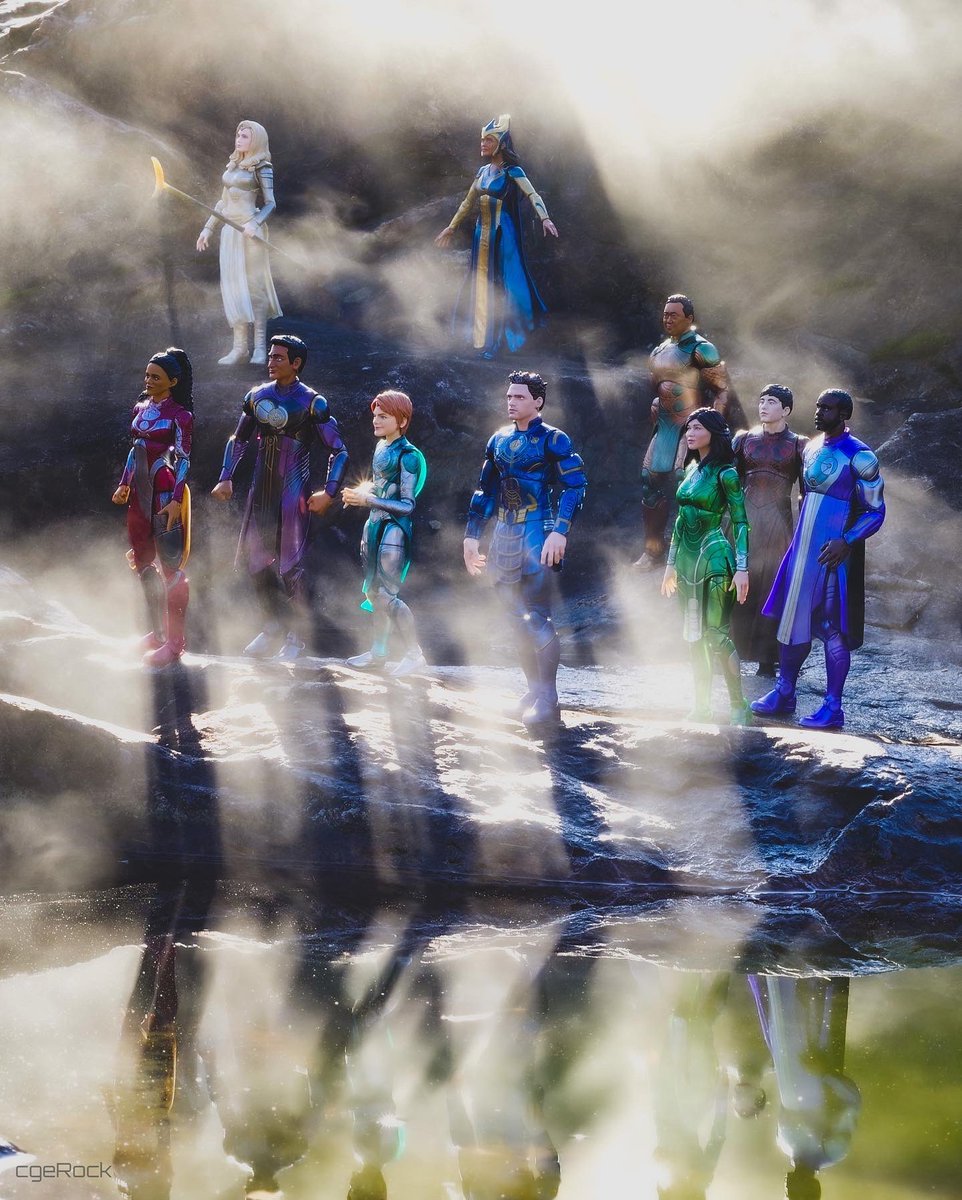#夜のフィギュア撮影会 2/21「フリー」 #エターナルズ #マーベルレジェンド というわけで、全員( -_・)?集合 リーダーのエイジャックは劇中ではすでにあれだったので除外 そう考えると男女比1:1だったのか 今更気づいた 個性豊かでどーゆー話にするかと思いきや全部楽しめた映画だった