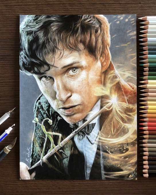 『ファンタスティックビーストとダンブルドアの秘密』よりニュート・スキャマンダーを色鉛筆で描きました! #FantasticBeasts #ファンタビ #ファンタスティックビースト #エディ・レッドメイン #色鉛筆