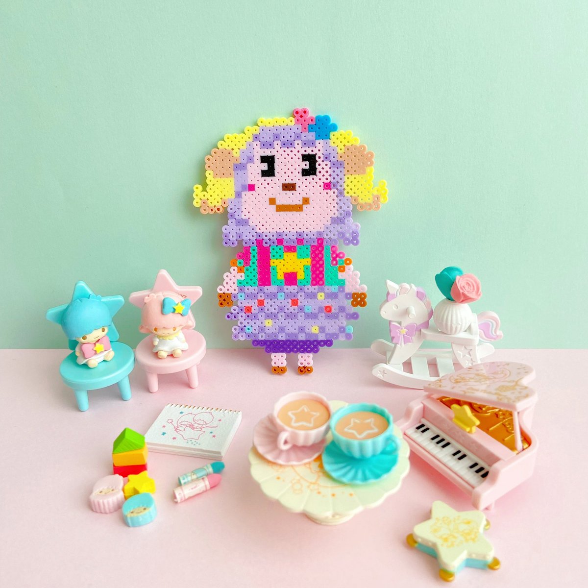 エトワールはゆめかわだなぁ〜! コラボに弱いのでこういう子はたまらんです。 サンリオの子、続々作るぞ! #アイロンビーズ #ドット絵 #pixelart #perlerbeads #あつまれどうぶつの森 #あつ森 #エトワール #animalcrossing