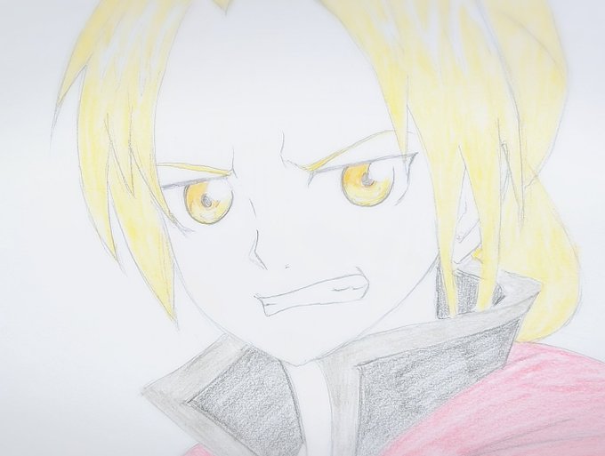 「鋼の錬金術師」エドワード・エルリック描いてみましたぁ〜😊🌸🌷💕✨ #早坂美穂 #お絵描き #お絵かき好きな人と繋がりたい #お絵描き好きさんと繋がりたい #鋼の錬金術師 #エドワード・エルリック #エド #山田涼介 #シャーペン画 #色鉛筆 #みんなで楽しむTwitter展覧会