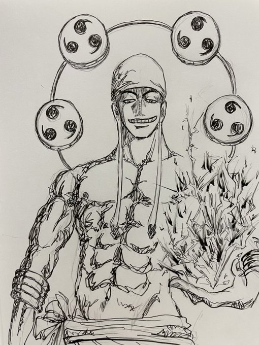 エネル書きました〜✎ 普通にかっこ良いね(^_-)-☆ #バウンティラッシュ #イラスト #イラスト好きな人と繋がりたい #イラスト成長記録 #イラスト好きさんとつながりたい #ワンピースイラスト #エネル #神様 #ワンピース