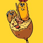 【#エビフライくんを満腹に】 エビフライくんにマカロンをあたえました₍₍ (ง ˘ω˘ )ว ⁾⁾ カキフライちゃんも一緒です。 #漫画が読めるハッシュタグ #イラスト #毎日更新 (※コメントで食べ物を与えれます)