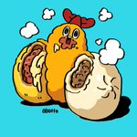 【#エビフライくんを満腹に】 今日は #十五夜 なのでお餅をあたえました₍₍ (ง ˘ω˘ )ว ⁾⁾ #漫画が読めるハッシュタグ #イラスト #毎日更新 (※コメントで食べ物を与えれます)