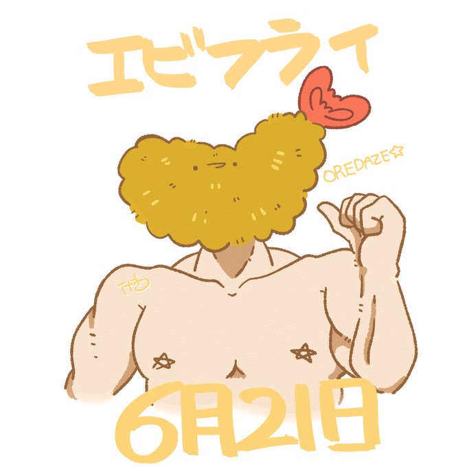 今日はエビフライの日らしい~! Fooooooooooooo! 俺の日じゃあああああああん #今日は何の日 #エビフライの日 #マッチョなエビフライさん #一日一絵 #うるせえ俺は神絵師になりたいんだフォローしろ