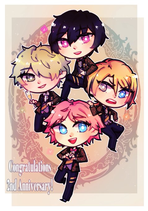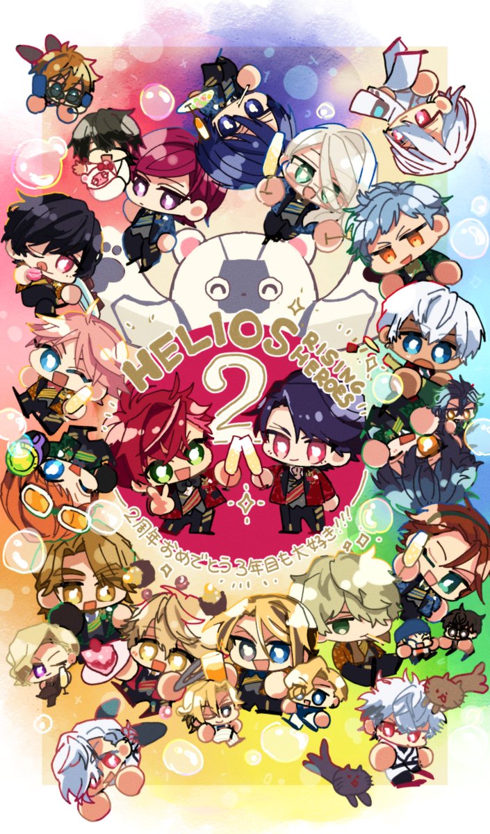 2周年おめでとうございます🎉🎉✨ これからも末永く皆様に愛される作品となりますように🌸 キラキラ楽しい日々とHAPPYをありがとう!だいすき!❤️💙💛💚 #エリオスR_2nd_Anniversary #エリオスR_FA