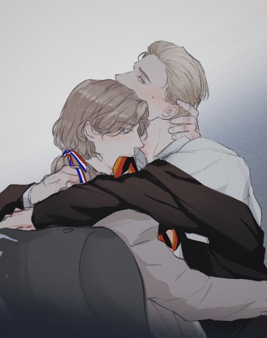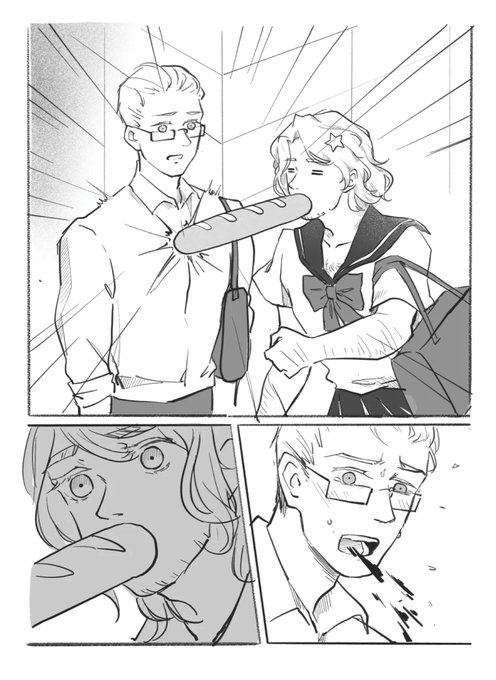 Eat bread while running to school. But you’re French. 🥖 #エリゼ組 #ルートヴィッヒ #フランシス・ボヌフォワ #ヘタリア #hetalia #hwsgermany #hwsfrance