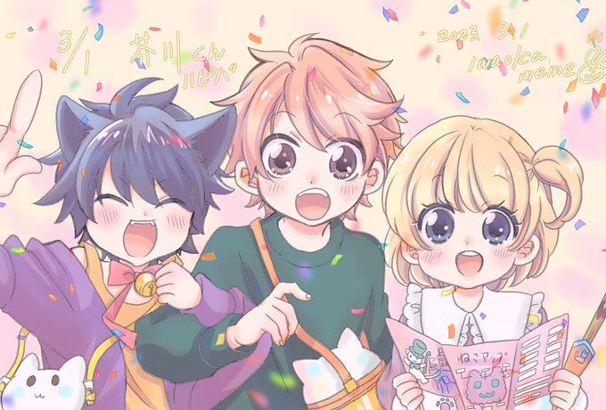 本日3月1日はエリートジャック‼︎芥川くんのお誕生日🎂 今年のハピバイラストはいわおか作品とコラボでお届け。 芥川くんをお祝いするのは「にゃんにゃがにゃん」のレンくんとちえりちゃん「猫大好きチーム」です🐈おめでとう🎉 #エリートジャック #にゃんにゃがにゃん
