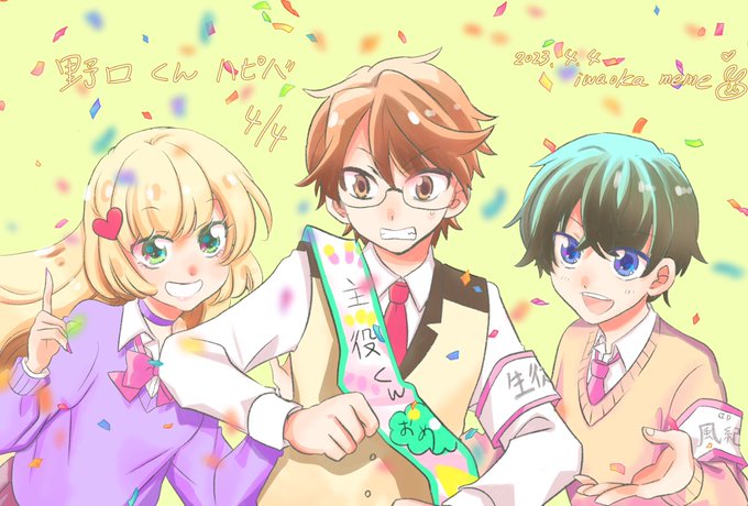 今日4月4日はエリートジャック‼︎野口くんの誕生日🎉 今年のハピバイラストはいわおか作品とコラボでお届けします。 野口くんをお祝いするのは「イイネREIWAギャルあみるん」のあみるちゃんと一条くん「生徒会・風紀委員コンビ+ギャル」チーム☺️🐰 #エリートジャック #イイネREIWAギャルあみるん