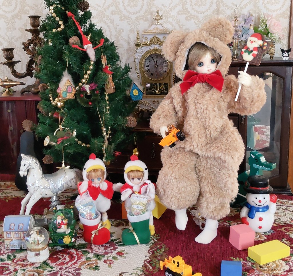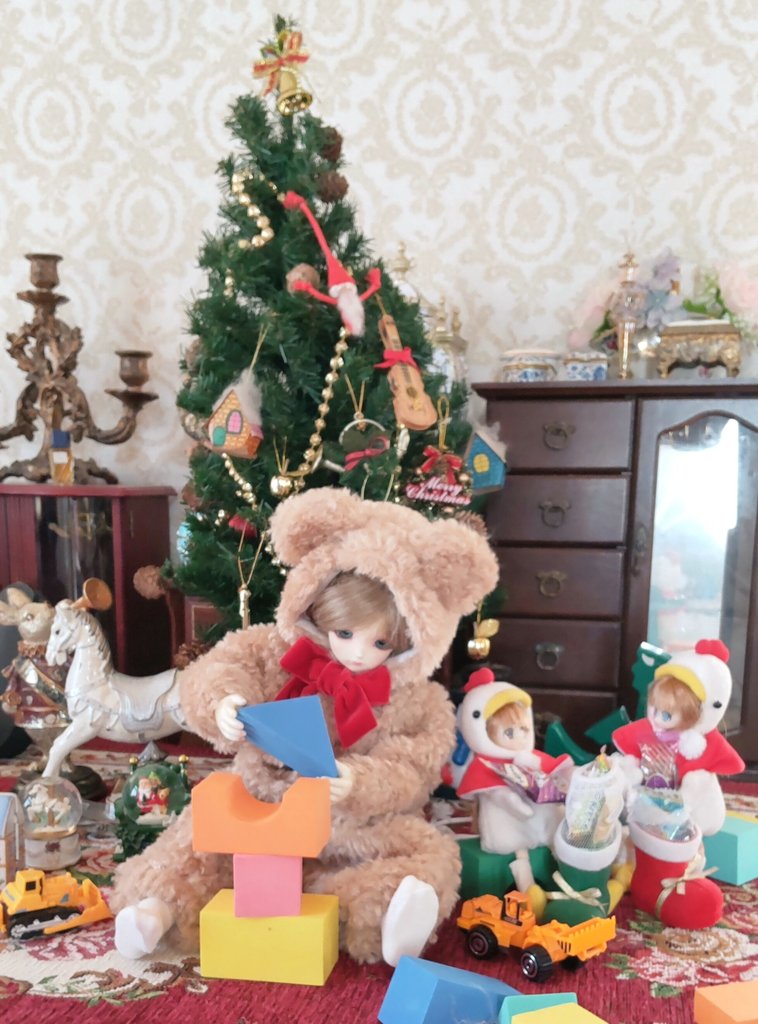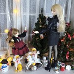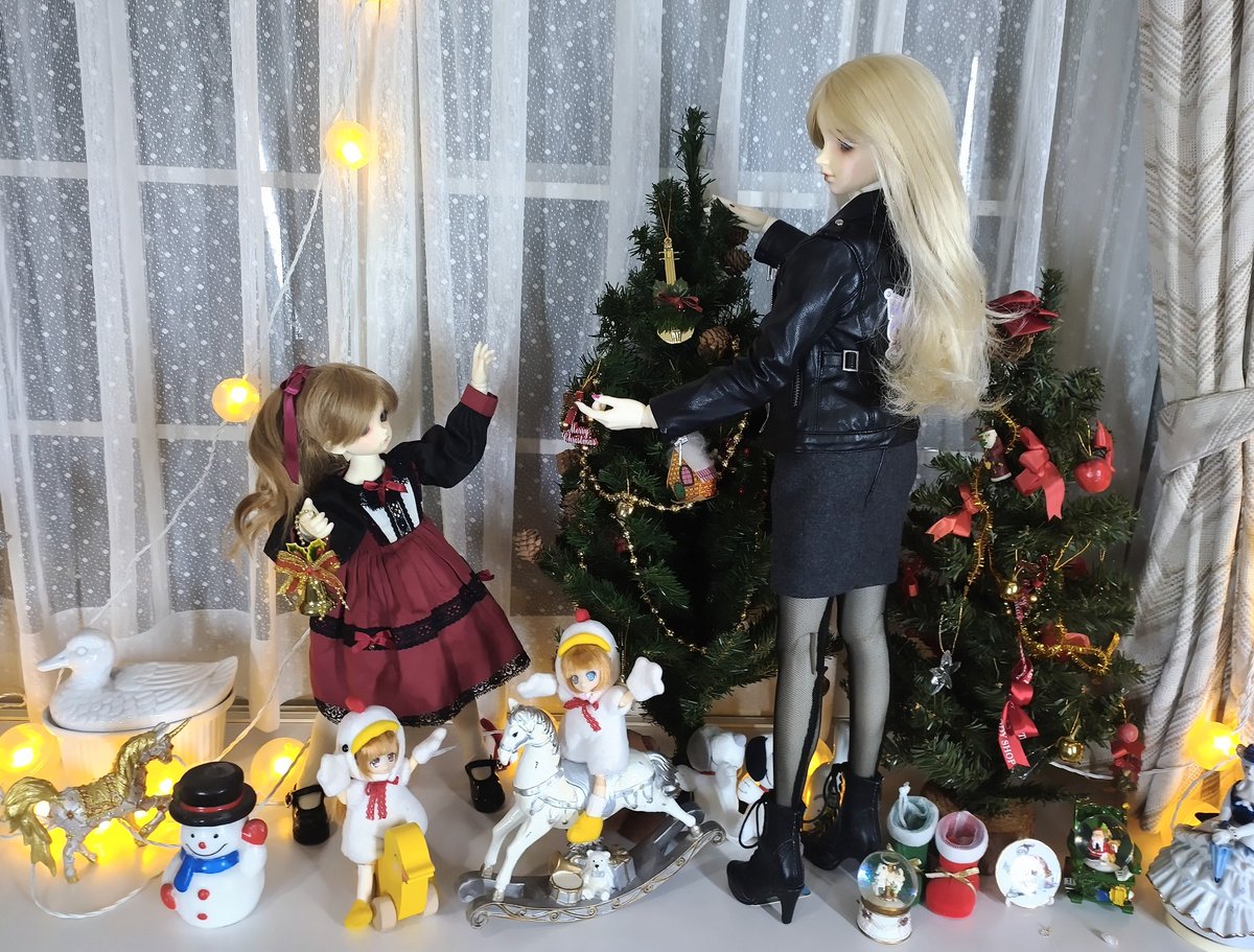 #今夜のドール撮影120分一本勝負 お題[はしゃぐ] おねえちゃんとクリスマスの飾り付けにはしゃぐももちゃんととりちゃん達🎶 #sdm48 #sd_f_43 #酉ネイリー #エルノ #クリスマス飾り付け