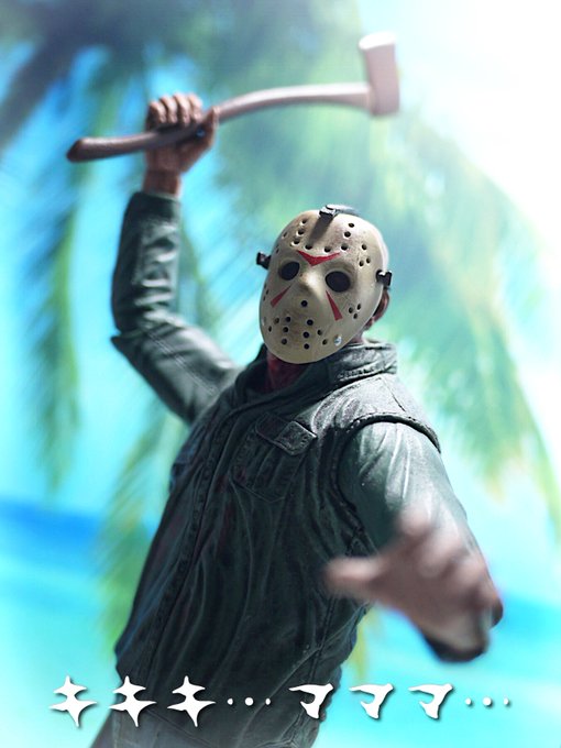 #夜のフィギュア撮影会 10/1 お題 『荒』 フレディ「寝不足がちの不規則な生活のせいか最近肌荒れがひどくてね…ビタミンCたくさん摂ろうと思って」 ジェイソン「俺もマスク荒れひどくてさ。ありがたく一杯いただくわ」 #neca #FridayThe13th #ANightmareonElmStreet #13日の金曜日 #エルム街の悪夢