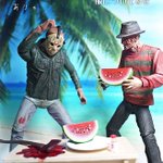 #おもちゃ撮影会 8/4テーマ『ホラー3』 #夜のフィギュア撮影会 8/4お題『フリー』 スイカ割りを楽しむジェイソン&フレディ。 #FridayThe13th #13日の金曜日 #ANightmareonElmStreet #エルム街の悪夢 #neca