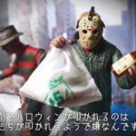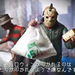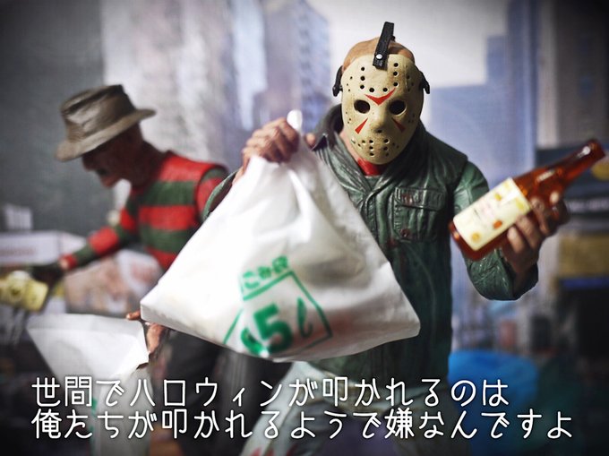 #楽しく玩具撮影会 10/31 お題『ハロウィン』 ハロウィン翌日の渋谷でゴミ拾いをするジェイソン君とフレディ君。 #FridayThe13th #13日の金曜日 #ANightmareonElmStreet #エルム街の悪夢 #neca
