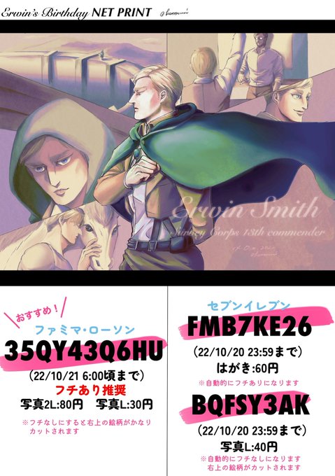 おはようございます! お誕生日イラストをネップリ登録しました🥳✨✨ もしお手元においてくださる方がいらっしゃったらよろしくお願いします☺️ #エルヴィン・スミス生誕祭 #エルヴィン・スミス生誕祭2022 twitter.com/ketomin/status…