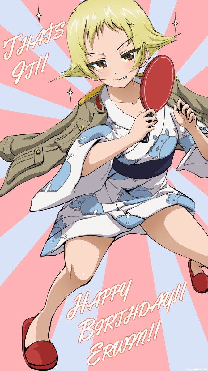 おくりもの #GuP版深夜のお絵描き60分勝負 #GuP版深夜のお絵描き60分勝負_20220617 お題「エルヴィン」「秋山 優花里」 #エルヴィン生誕祭 #エルヴィン生誕祭2022 エルヴィン、お誕生ヴィンおめでとう‼️🎉🎉🎂🎉🎉